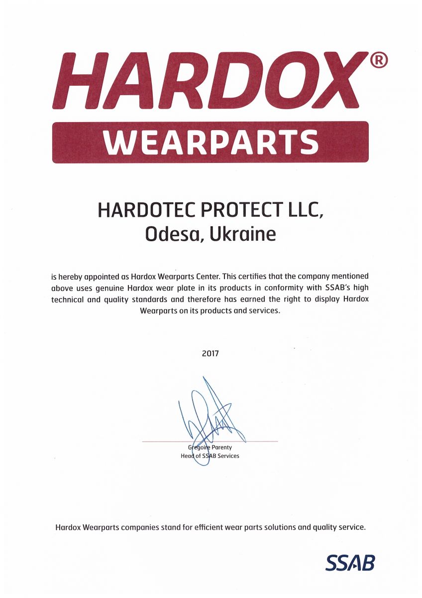 ООО «Хардотек Протект» – официальный сертифицированный представитель шведского концерна SSAB по международной сети HARDOX WEARPARTS®.
